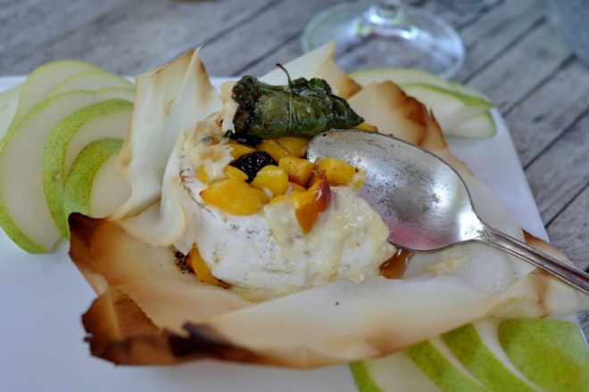 Je vous vois déjà, perplexes , en train de vous dire que c’est plutôt une entrée d’hiver et qu’on n’a pas envie de chauffer le four en ce moment… aha! mon brie fondant se fait sur le BBQ et il fera des heureux lors d’un apéro.
