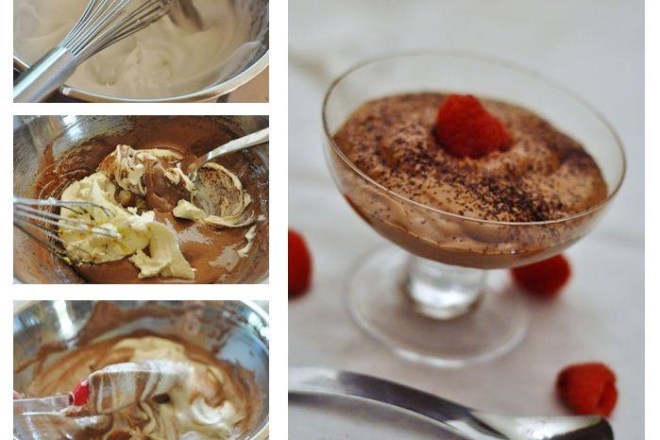- Blanchir les jaunes avec le sucre, (le sucre doit être dissous) et y ajouter le cacao tamisé. Fouetter toujours (parfois plus facile à la fourchette, jusqu’à cette étape) en ajoutant le mascarpone.